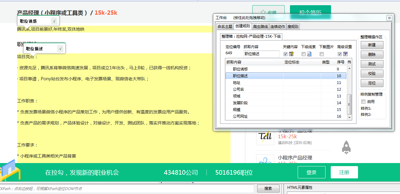 这篇文章重点结合我抓取拉钩上产品经理职位的实例,说一下Gooseeker的使用。